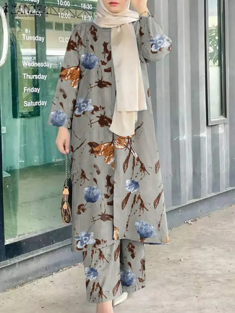 Zanzea Bohemian Summer Holiday Suits 2pcs Casual Long Sleeve Blouse Loose Pant Sets Vintage Floral Printed Matching Sets Outifit Aliexpress
