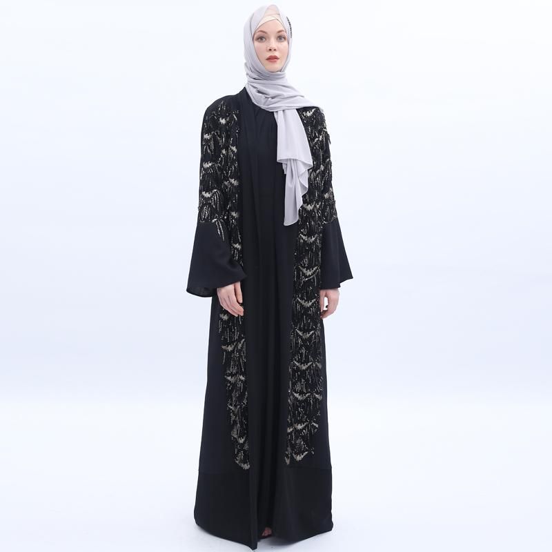 Summer Muslim Women Fashion Hijab Clothing Payer Long Flare Sleeve Waist Tie Sequin Black Open Abaya Kimono Kaftan Moroccan Casual Dresses From Halibuta 40 05 Dhgate Com